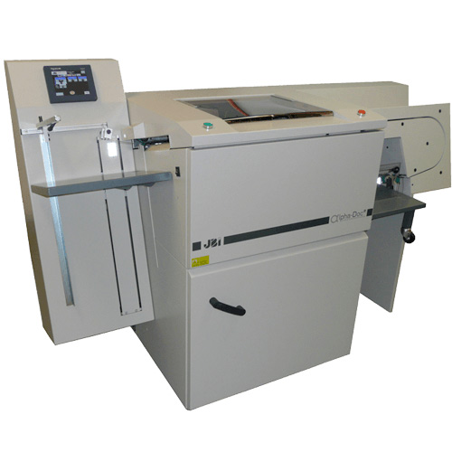 JBI Alpha-Doc MK4 - высокоскоростная автоматическая перфорационная машина для средних и больших тиражей, возможность работы с материалами плотностью от 70 до 300 г/м2, включая ацетатные и пластиковые обложки, при разнообразных видах перфорации, включая вырубку под ригель, с максимальной длиной перфорации 350мм. Машина обеспечивает реальную производительность до 34000 листов (80 г/м2) в час, включая время на загрузку материала и выгрузку готовой продукции.